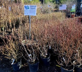 Sales area full of 2 gallon blueberry bushes